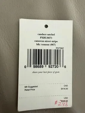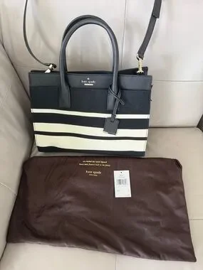 kate spade Black and Cement Striped Candace Satchel (Cameron Street- NWT/ cover)