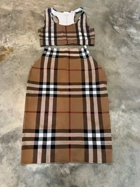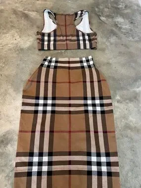 Authentic Burberry Tan Plaid Crop Tank & Pencil Skirt Set