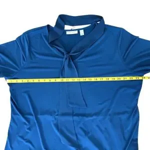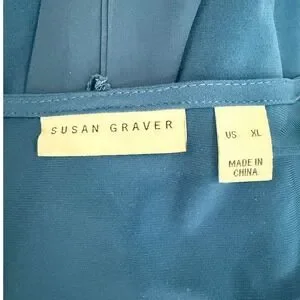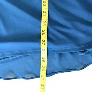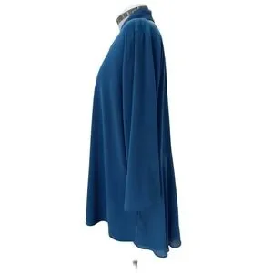 Susan Graver Teal Blue Tie Neck Mixed Media Chiffon Hem Tunic Top XL