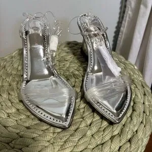 Tags: lucite, clear, sexy, strappy, cushioned, open toe, ankle wrap, chic, modern, unique, neutral, vegan