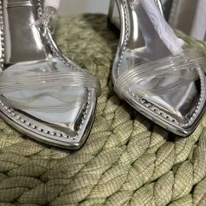Good American Cinder-f*cking Rella Clear Wedge Sandal Size 8