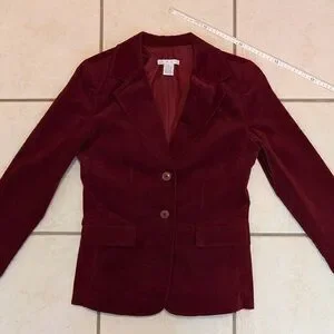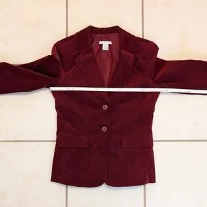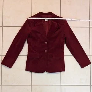 91% Cotton Vintage Cabi Red Embroidered Floral Velvet Whimsigoth 90s Blazer