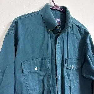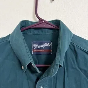 VTG Wrangler Western Shirt Green Button Down Long Sleeve Size Large