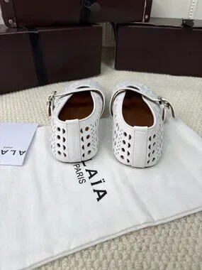 ALAÏA White Perforated Mary Jane Flats