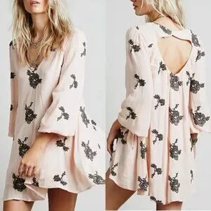 Free People Pink Black Floral Embroidered Cutout Austin Emma Dress 47029