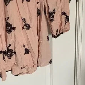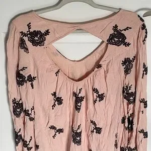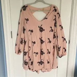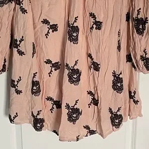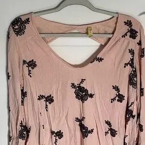 Free People Pink Black Floral Embroidered Pink Cutout Austin Emma Dress Size Medium