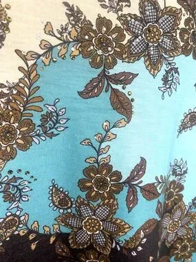 Allison Daley XL Turquoise Brown Floral Patchwork Long Sleeve Top Rhinestones