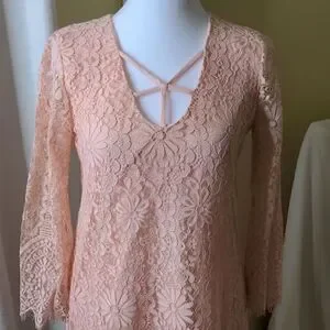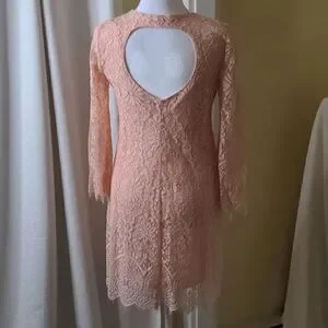Altar'd State Small Pink Lace Dress with Fringe and Back Detail, NEW
