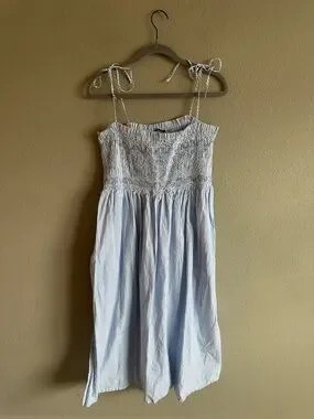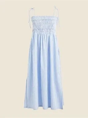 J. Crew Paloma Blue Pinstripe Smocked Maxi Dress Large