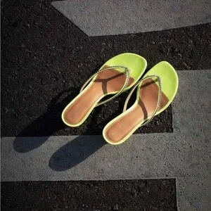 We make a great pair. The Cleo is a kitten heel sandal, with rhinestone detailing on the thong straps.