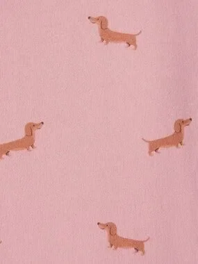 Soft pink sweatshirt and matching shorts with a playful dachshund all-over print. Relaxed, cozy fit with a drawstring waist for adjustable comfort. Easy-to-wear pink set that pairs well with casual shoes for laid-back days. Gentle fabric that feels soft against skin.