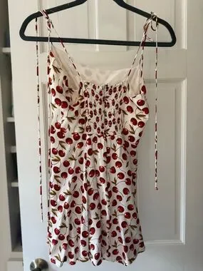 Reformation White Mini Dress with Red Cherry Print