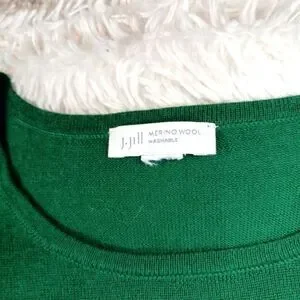 J. Jill 100% Merino Wool Washable Tunic Sweater Green Side Slits Scoop Neck Women's XS. Lightweight Long Sleeve Knit Tunic Sweater