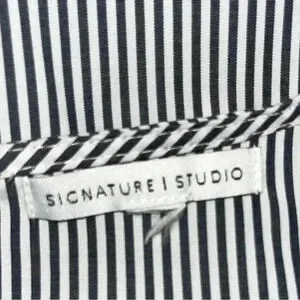 Signature Studio railroad striped, embroidered, sleeveless shirt with waist tie