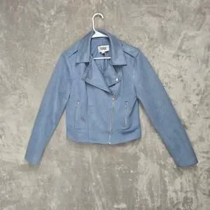 BB Dakota Steve Madden Faux Suede Moto Jacket Blue Women's Size M Streetwear