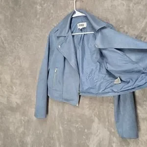 Keywords: moto jacket, faux suede, blue jacket, biker jacket, women's jacket, lightweight jacket, casual jacket, streetwear, fashion jacket, outerwear, fall fashion, spring fashion