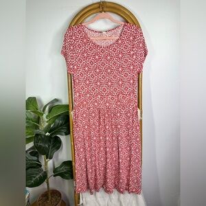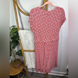 Boden red and white patterned printed dress short sleeve size 12, viscose elastane blend, knee length,