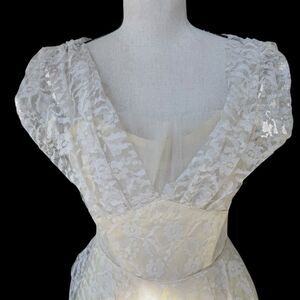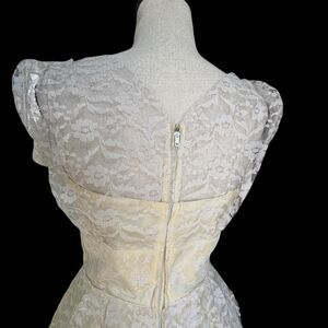 VTG 50s 60s Lace Bridal Party Dress Cream White Cottagecore Prairie Fit Flare S