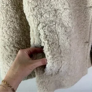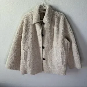 The Cropped Plush Car Coat by The Great. Cut from natural colored bonded fleece fabric that's plush on one side and soft and smooth on the inside, the coat is inspired by a clean cut 1950's silhouette with dropped shoulders,