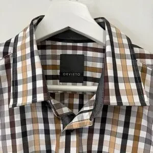 Stylish Orvieto checkered shirt featuring a blend of black, brown, and white. Perfect for business, office, travel, casual wear.