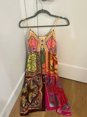 Brand new with tags. Stunning colorful Farm Rio dress with a small cutout design in the middle and button details down the middle. Can be dressed up or down. Great for vacation!