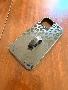 Stylish Loopy Case in dark green with a leopard print design. Built-in finger loop for secure one-handed use. Slim profile adds grip without bulk. Fashion-forward pattern for everyday carry.