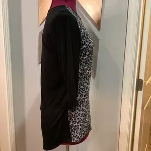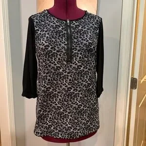 In excellent used condition. Size medium. Features a zipper front and a semi sheer animal print.