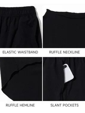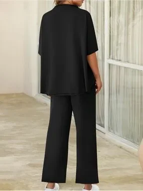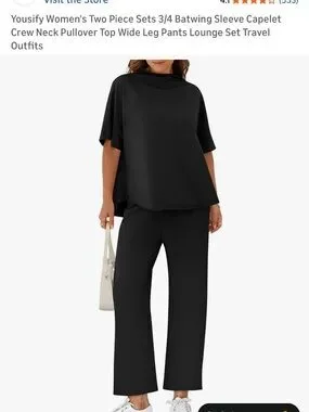 NEW set: A bestseller online! Viral lounge set. A versatile black tunic and pants designed for effortless style. Features a relaxed crew neck and draped silhouette for comfortable wear. See photos for measurements.