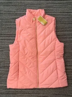 🔥🔥🔥NEW Michael Kors Bright Blush Coral Quilted Puffer Vest Jacket