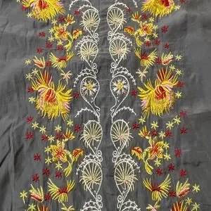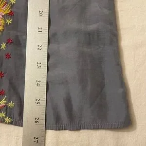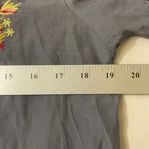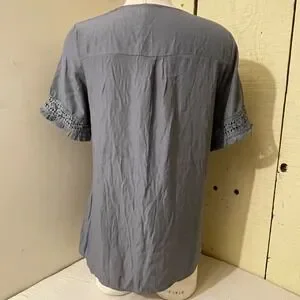 Embroidered Blouse Womens Medium Gray V Neck Top Short Sleeve Crochet Bohemian