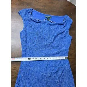 LAUREN RALPH LAUREN Womens Sheath Knee Length Dress Size 10 Navy Blue Lace