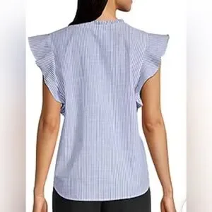 Liz Claiborne Women's Blue and Whote Flutter Sleeve Blouse EUC Size - Medium