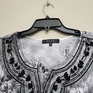 B.L.E.U. size 2X Mesh Embroidered Boho Floral Grunge Fairy Made in USA Black