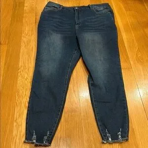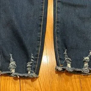 Stylish and comfortable dark blue distressed jeans for women. Perfect for casual outings and everyday wear.