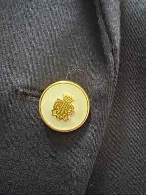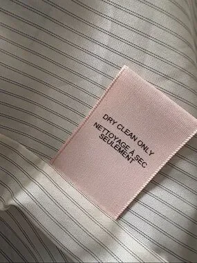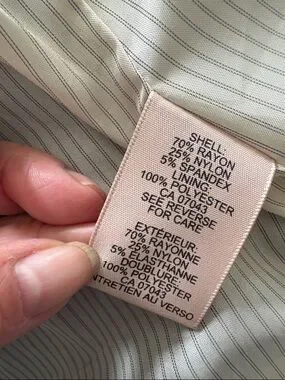 Classic tailored blazer from Philosophy. Single gold-tone button closure. Notch lapel and rollable striped cuffs. Versatile for work or elevated casual looks. Cream striped satiny lining. Dry clean only.