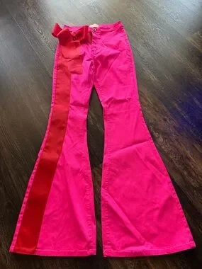 Judith March Hot Pink Boot Cut Pants with Red Ribbon Trim