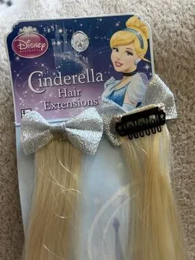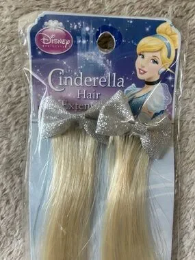 Cinderella Disney Clip-In Hair Blonde Extensions with Silver Bows-Brand New