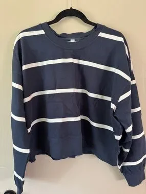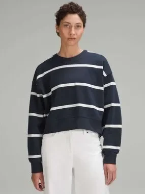 lululemon athletica True Navy and Antique White Striped Cropped Crew Sweater