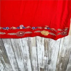 Elegant red women's top featuring intricate floral embroidery. Perfect for adding a touch of color to your wardrobe.
