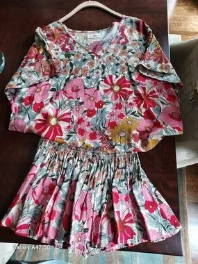 NATURAL LIFE Pink Floral Casual Shorts Set. Top XSMALL and Shorts SMALL