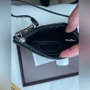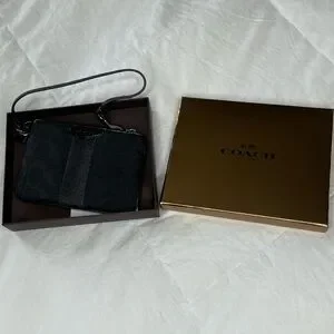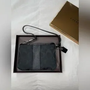 Like new with original box and tags, COACH 12cm small signature black jacquard pattern wristlet wallet