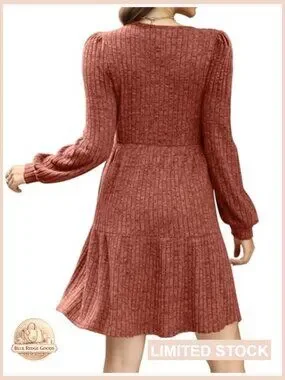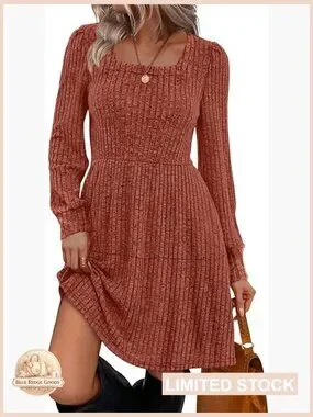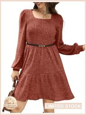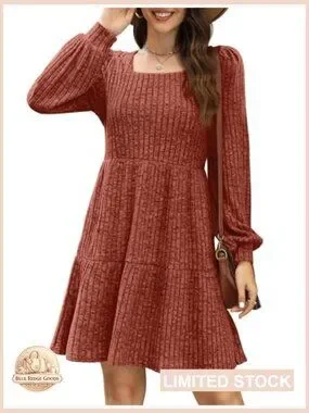 Square Neck Babydoll Sweater Dress Long Sleeve Flowy Casual Fall Fashion