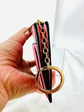 Michael Kors Coral Pink Saffiano Leather Card Holder Keychain