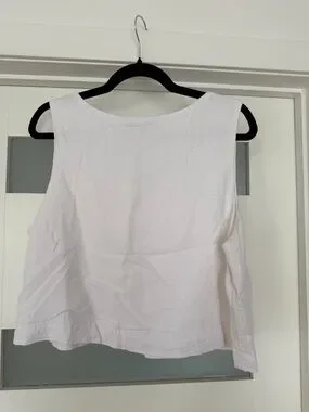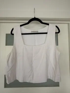 Crisp white square-neck tank from Abercrombie & Fitch. Sleeveless cropped silhouette with wide straps. Lightweight, breathable fabric for warm days. Clean, minimalist look that layers well.