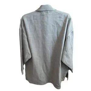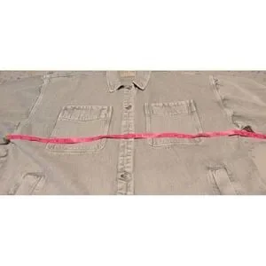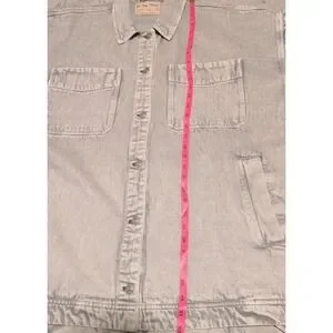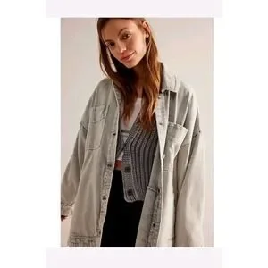 This jacket is effortlessly cool in an oversized silhouette, this laidback jacket from the We The Free Collection is featured in a button-down style with a collared neckline and pocket detail at the chest. Oversized fit, hits below the hips. Soft cotton twill, button-down style, collared neckline, oversized pockets at the chest, pockets for hands, and cuffed sleeves. Perfect layered over a dress or paired with your favourite graphic tee, this effortless jacket has endless ways to wear
