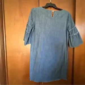 Cute Boho Vive Denim Dress by Mittoshop. Raw hem, bell sleeves. Keyhole neckline. Size Medium