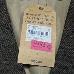 The Lands' End Canvas 1963 Tweed Wool Vest in Brown is a stylish and versatile piece perfect for a variety of occasions. Made from a high-quality wool blend with a tweed pattern, this vest features a button closure and a chambray fabric back. The size small vest is designed for women and can be worn in the winter and fall seasons. With its classic Lands' End brand and timeless style, this vest is a wardrobe essential for any fashion-forward individual looking for a sophisticated and cozy outerwear option. Measurements are listed below as well as in the photos.