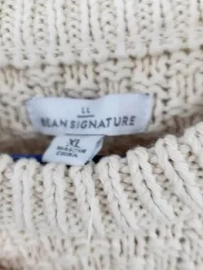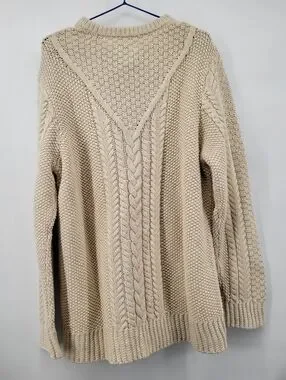 L.L. Bean Women's Cotton Fisherman Cable Knit Crewneck Sweater in Beige Size XL