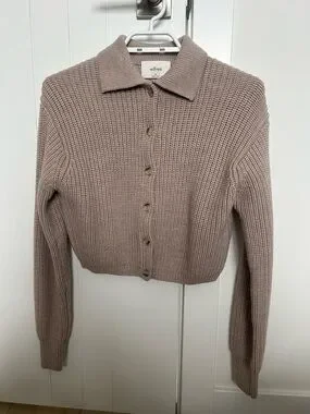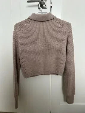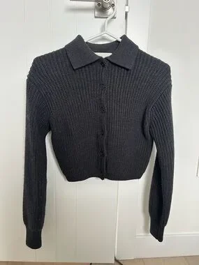 Cropped knit cardigan with a polo collar. Color is a bit lighter in person. Also selling one in dark grey. Flexible price.