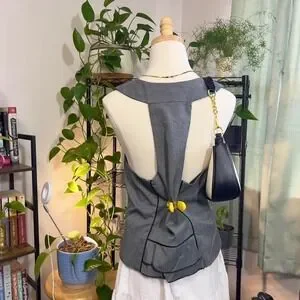 Y2K Stooshy Button Vest Top Size XL Corpcore Grunge Office Siren